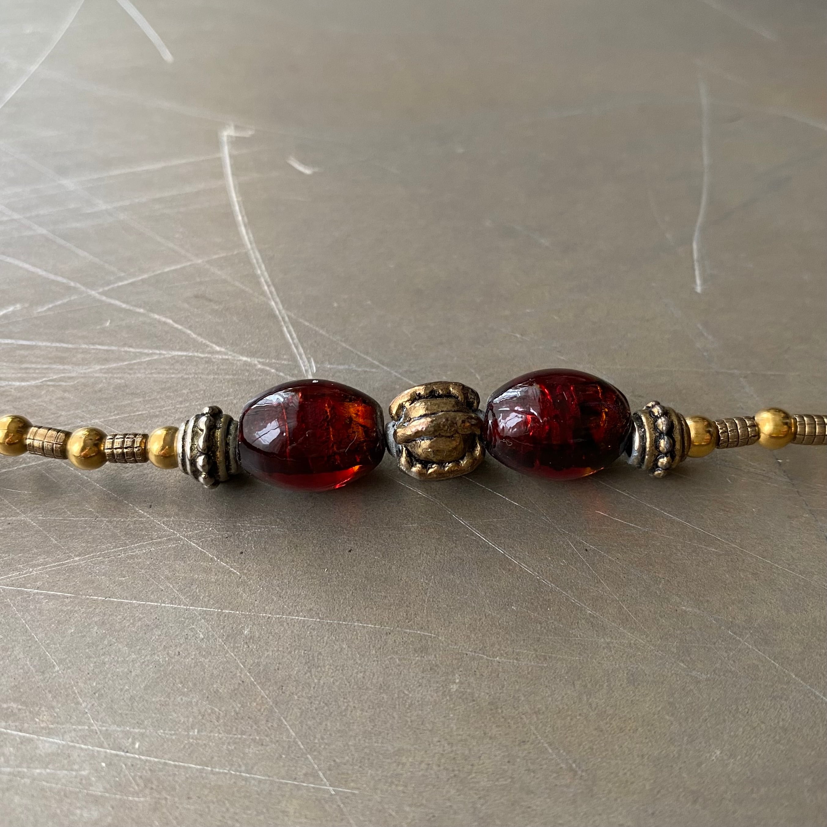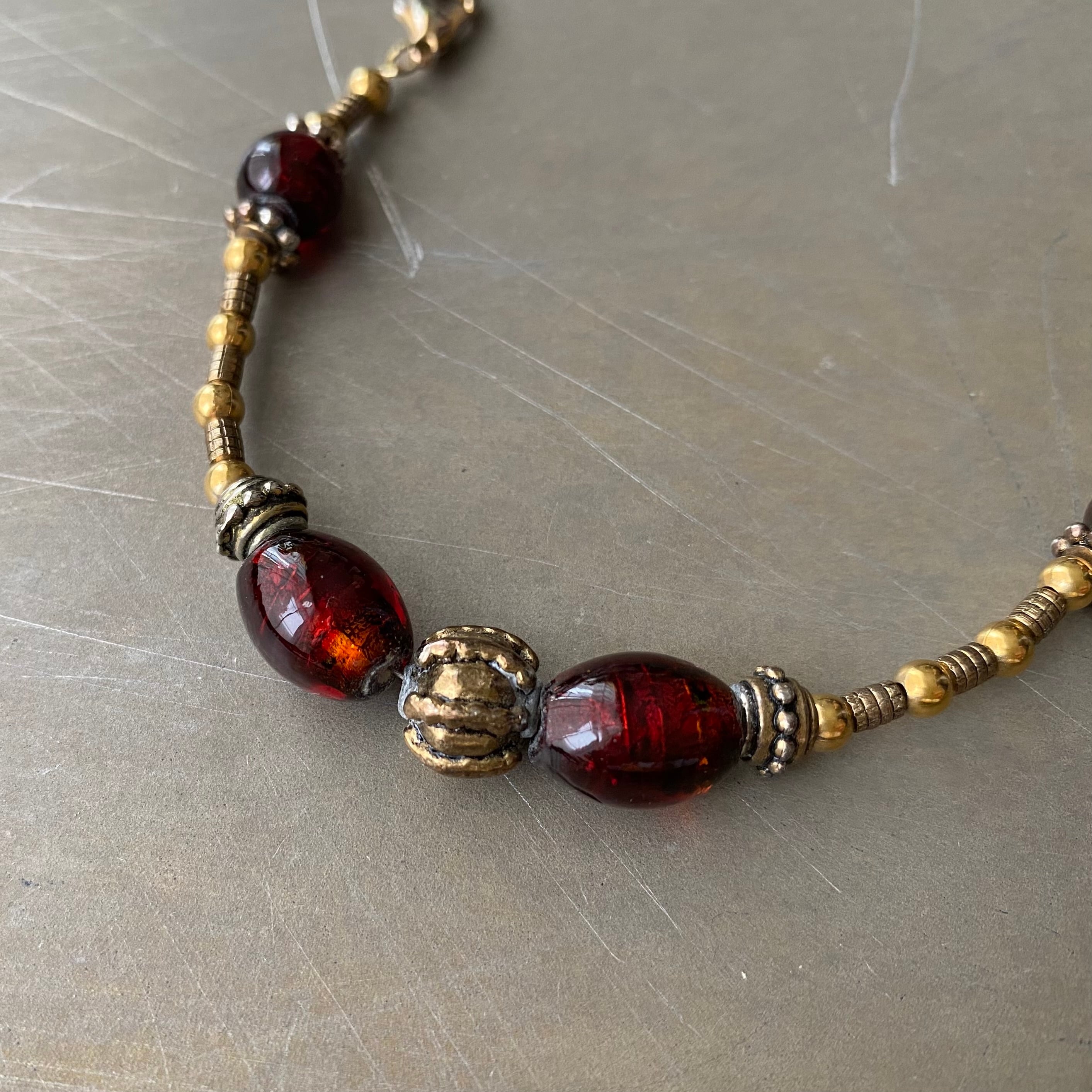 レトロなハンドメイドのガラスビーズが魅力的なUSAヴィンテージブレスレット。落ち着いたメタルの色味がクラシカルな雰囲気。身につけやすいサイズ感でスタイリングにお洒落な雰囲気をプラスしてくれます。