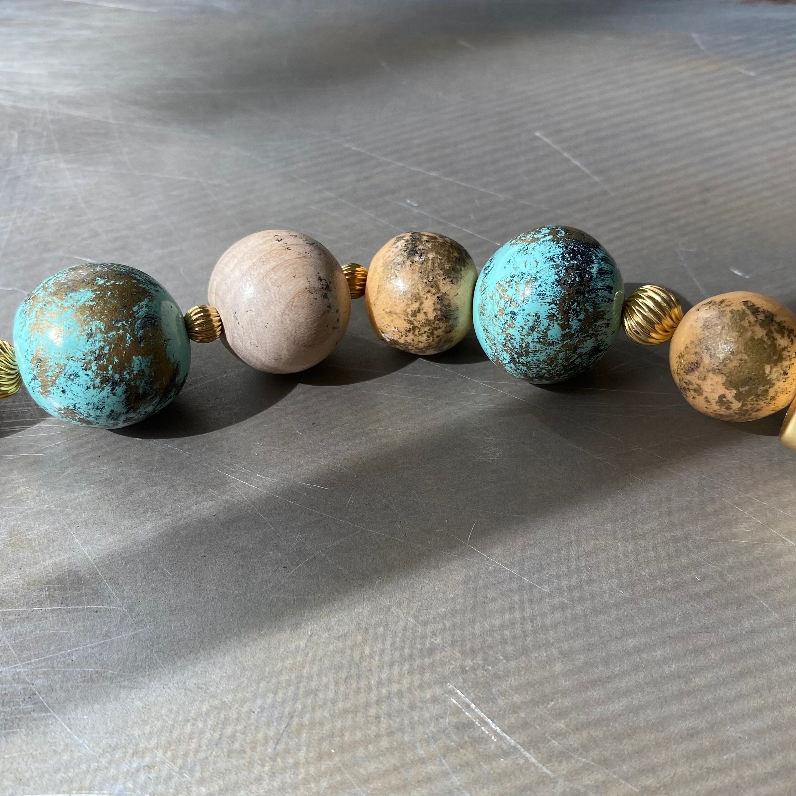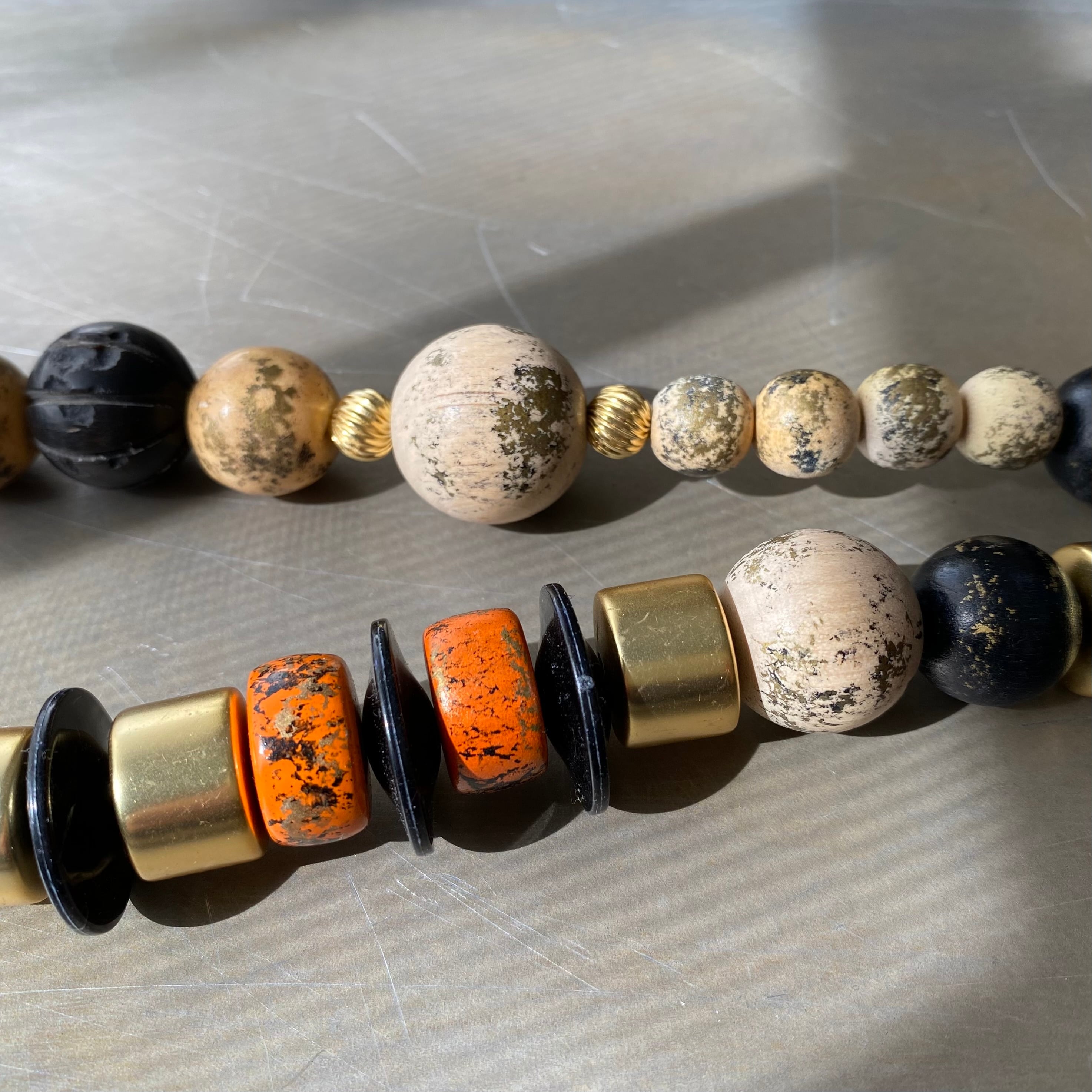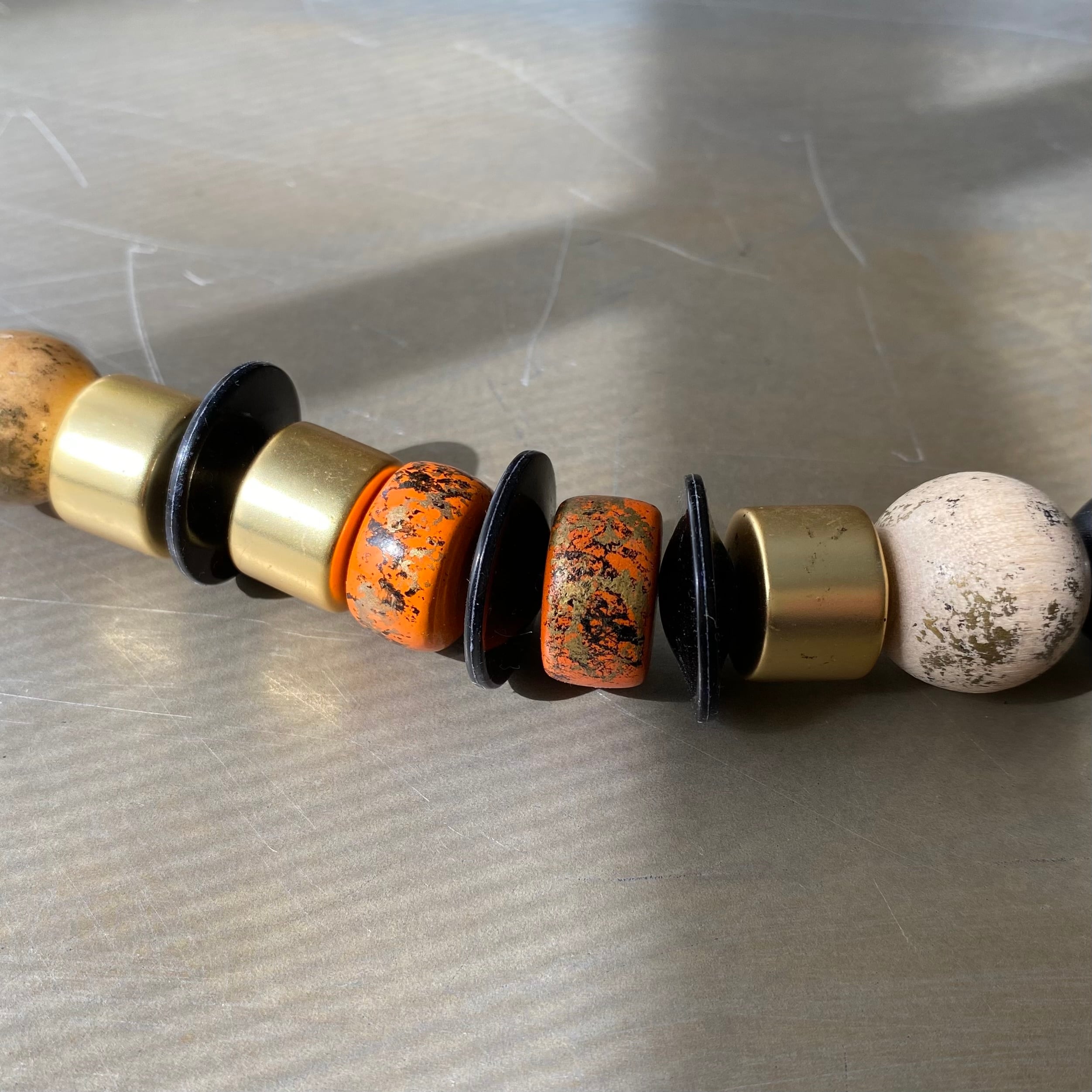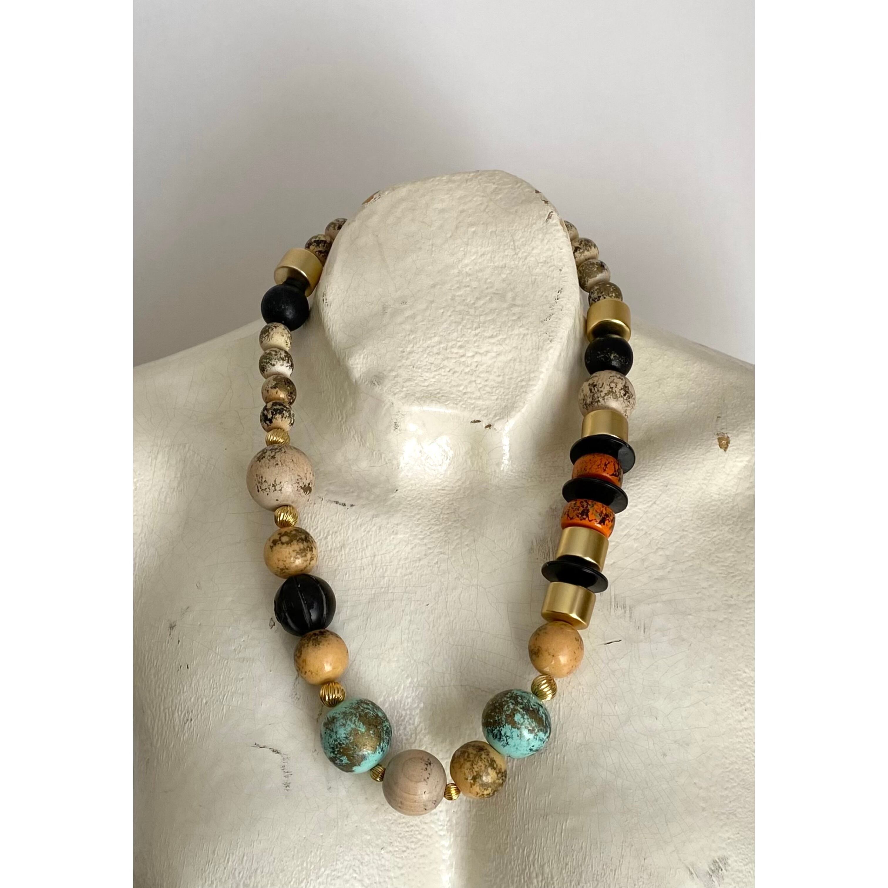 ジョージア州アトランタを拠点に1980〜1990年代に人気を博したアクセサリーブランド「Carolyn Tanner」のUSAヴィンテージネックレス。大胆で個性的なウッドビーズ使いが魅力的なデザイン。カラフルな色合いがスタイリングに映えコーディネートを明るく彩ってくれます。