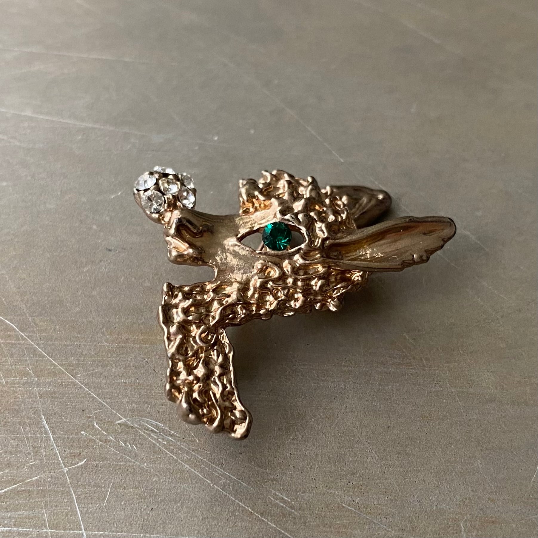 Vintage retro crystal green bijou animal brooch レトロ ヴィンテージ アクセサリー クリスタル グリーン ビジュー アニマル ブローチ