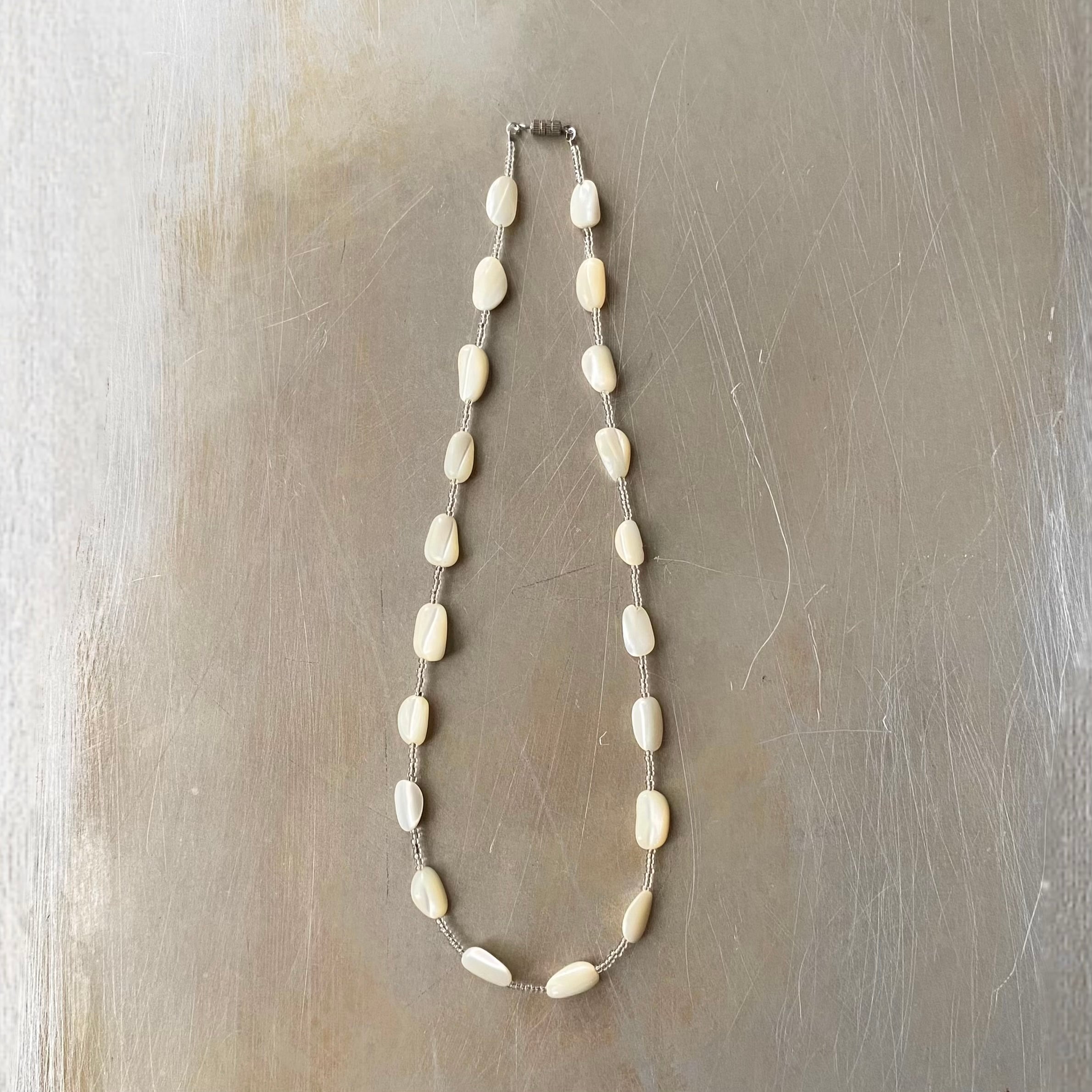 Vintage 70s-80s retro classical mother of pearl shell beads necklace レトロ ヴィンテージ アクセサリー クラシカル マザーオブパール シェル ビーズ ネックレス