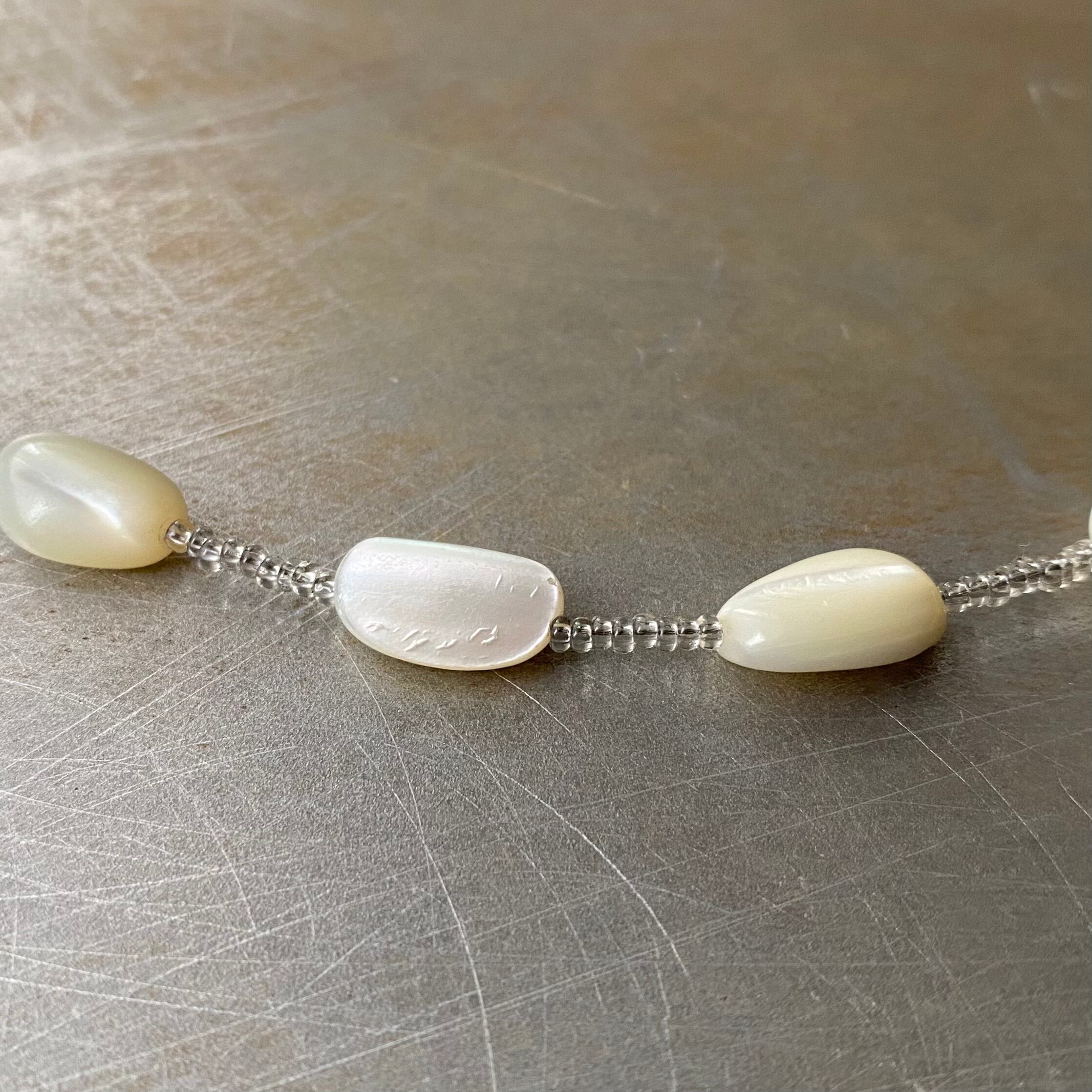 天然石(マザーオブパール)、ガラスビーズ、メタル(シルバーメッキ)