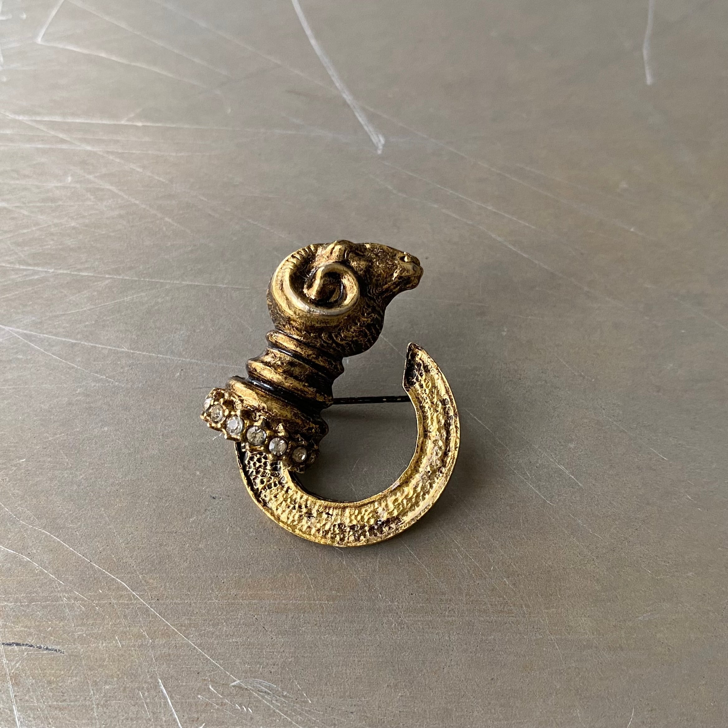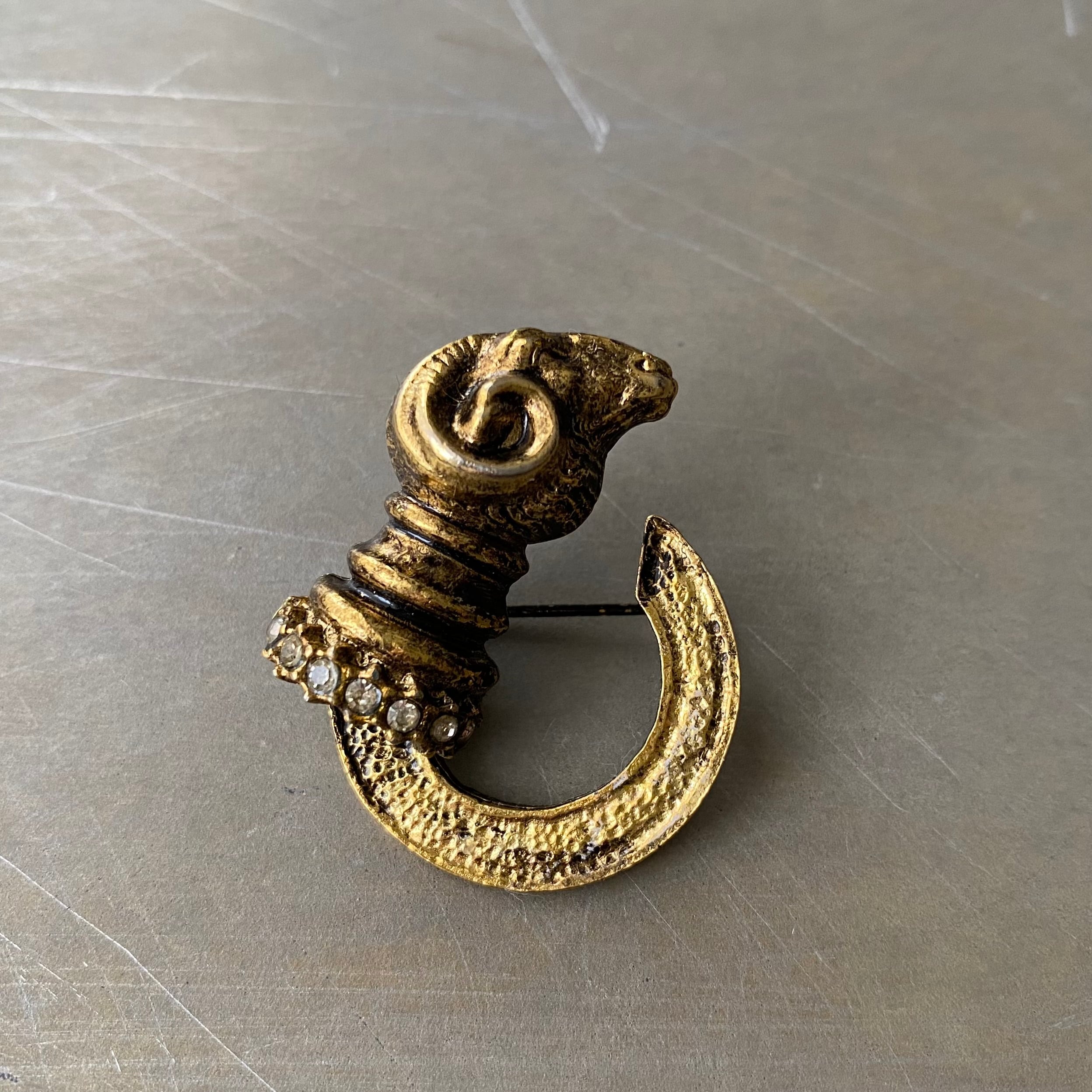 Vintage retro crystal bijou ram brooch レトロ ヴィンテージ アクセサリー ゴールド クリスタル ビジュー ラム 羊 ブローチ