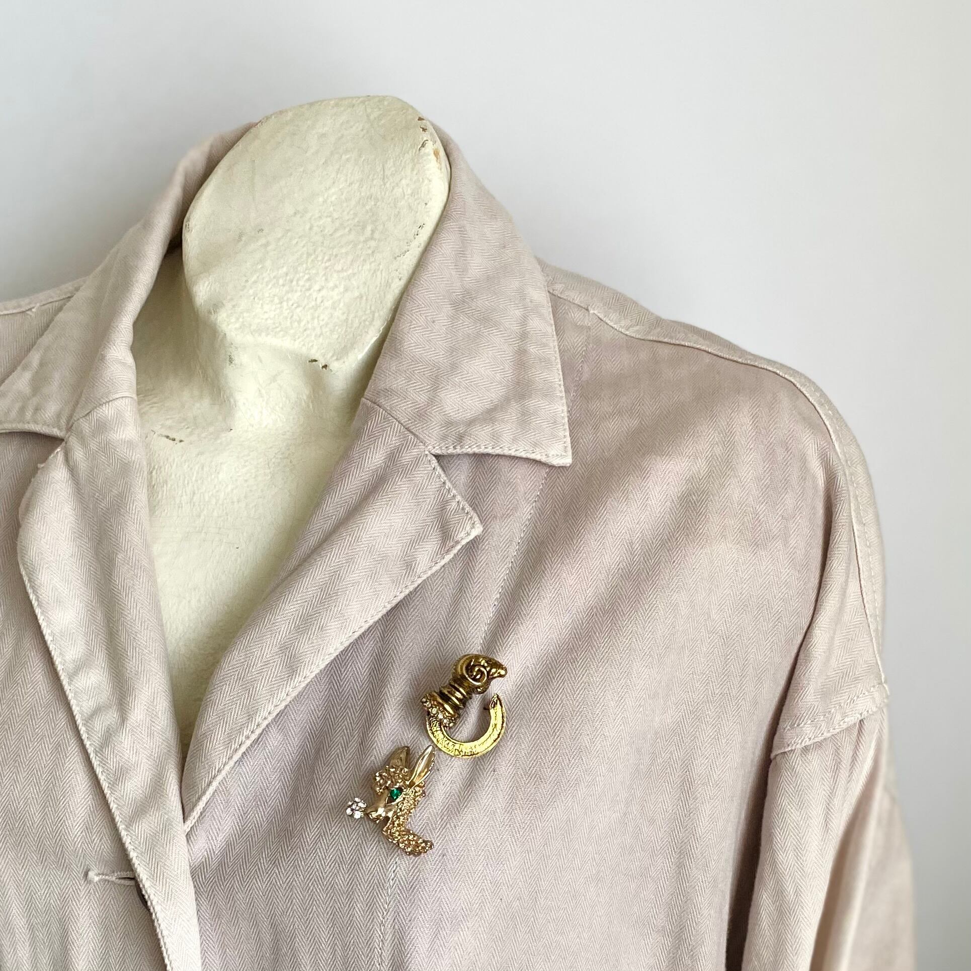 神秘的な雰囲気の羊のヴィンテージブローチ。細部まで繊細に作られた羊の表情や、さりげなく輝くビジューが魅力的です。コーディネートに取り入れやすいサイズ感で、ストールやジャケット等のアクセントにおすすめです。