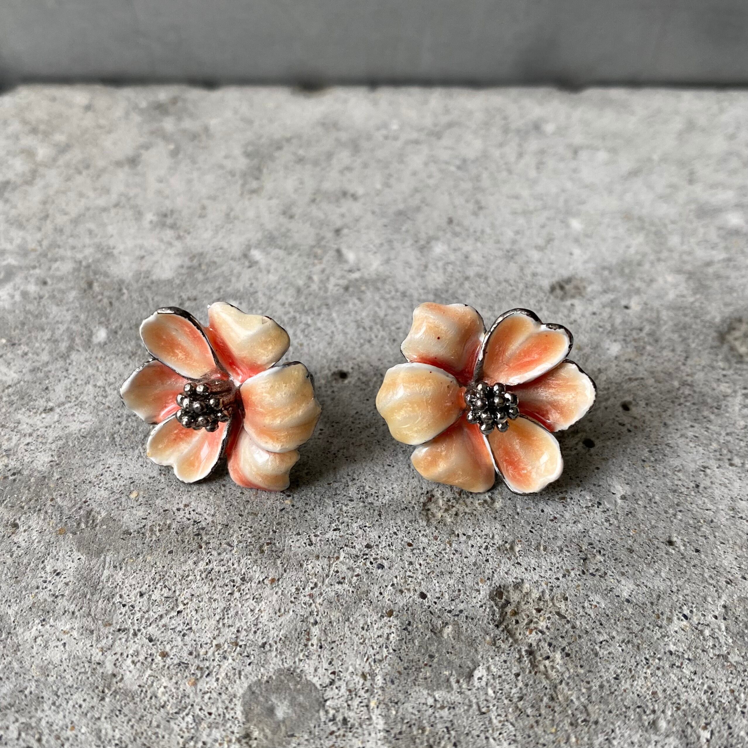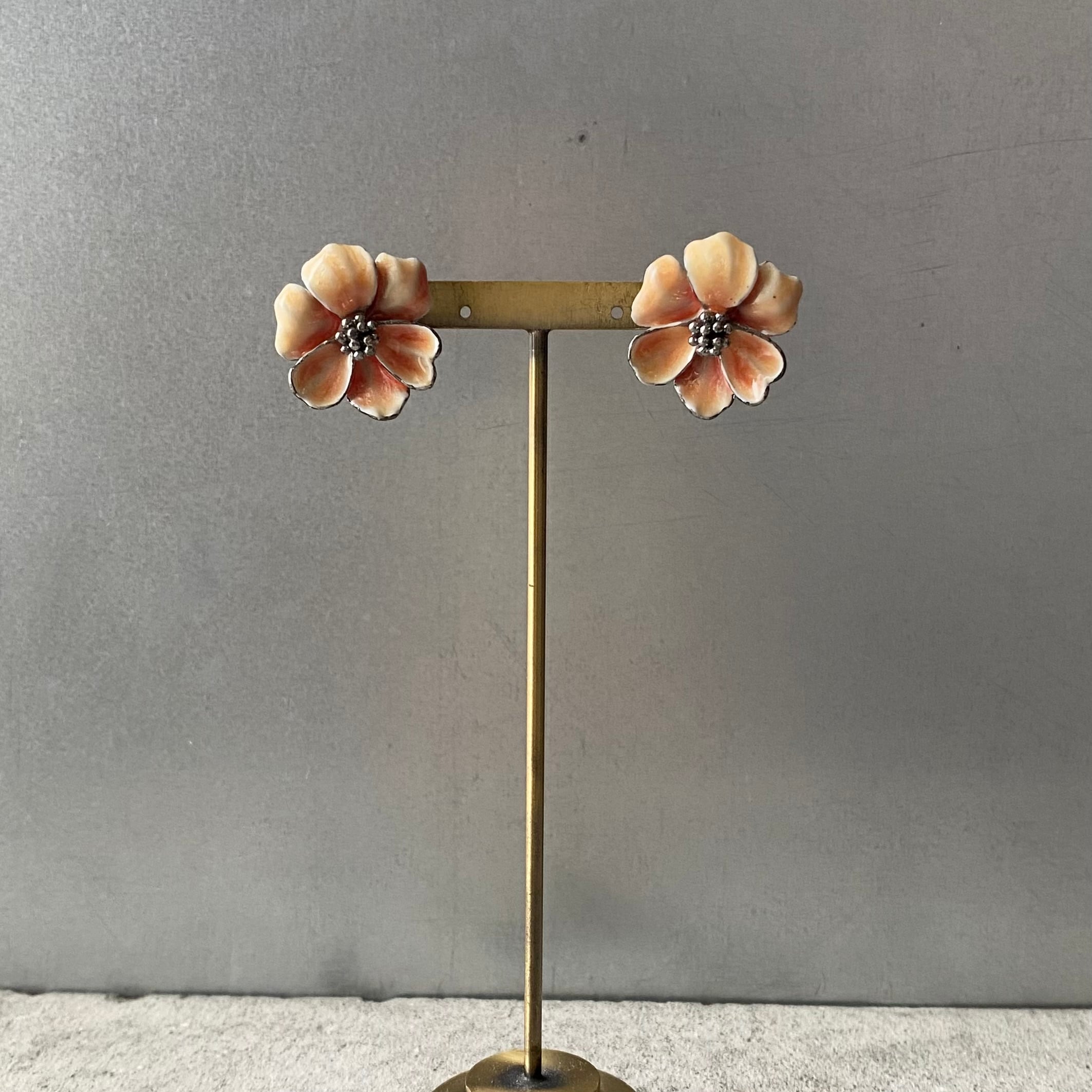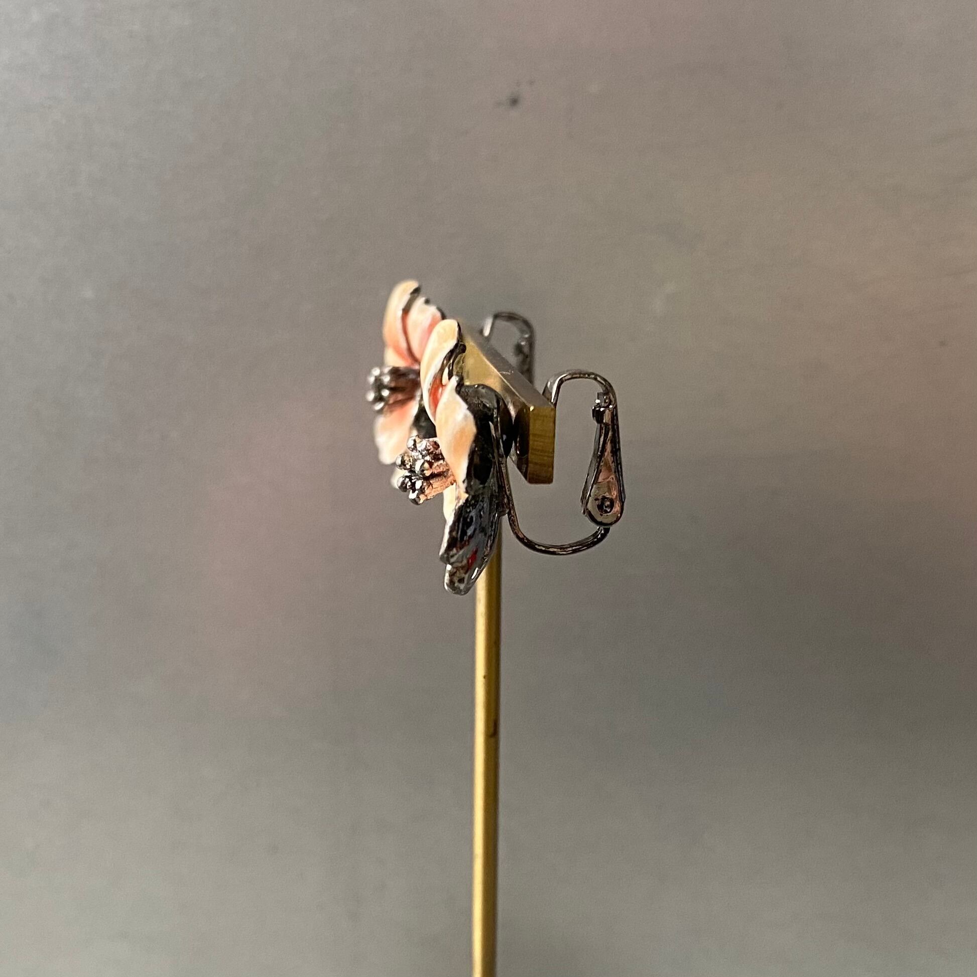 Vintage retro botanical flower enamel earring レトロ ヴィンテージ アクセサリー ボタニカル フラワー エナメル イヤリング