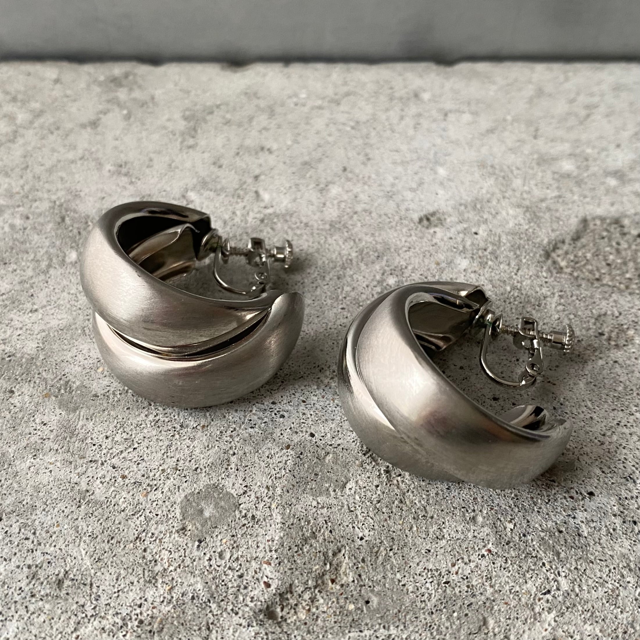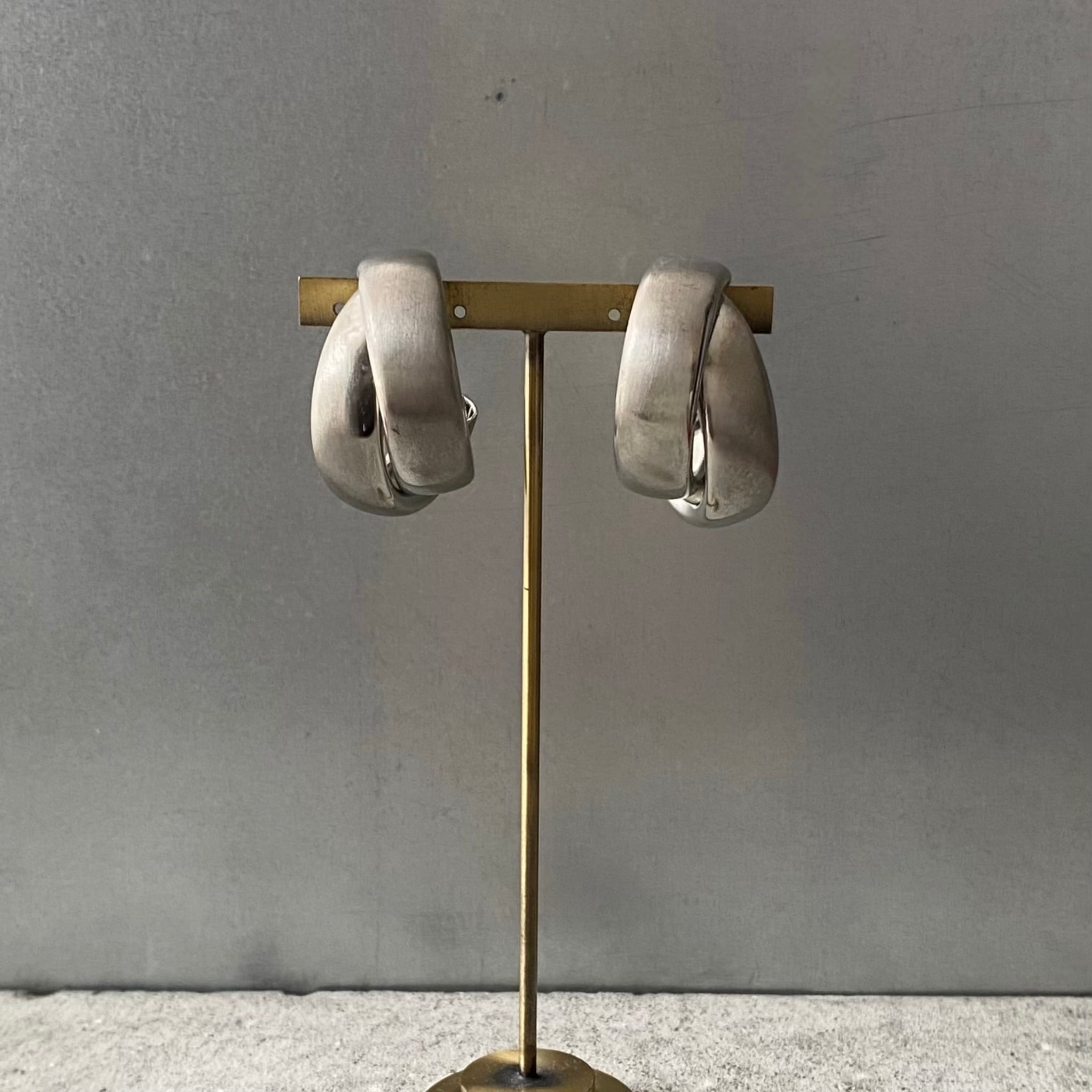 レトロモードな雰囲気のヴィンテージフープイヤリング。クラフト感のあるヘアライン仕上げがお洒落な雰囲気。ボリューム感のある2連タイプでスタイリングのアクセントにおすすめです。