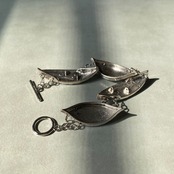 クラシカルな雰囲気のUSAヴィンテージブレスレット。リーフモチーフのパーツが連なった個性的なデザイン。ボリューム感がありコーディネートのアクセントに。古着やユニセックスなスタイルに合わせて頂くのもオススメです。
