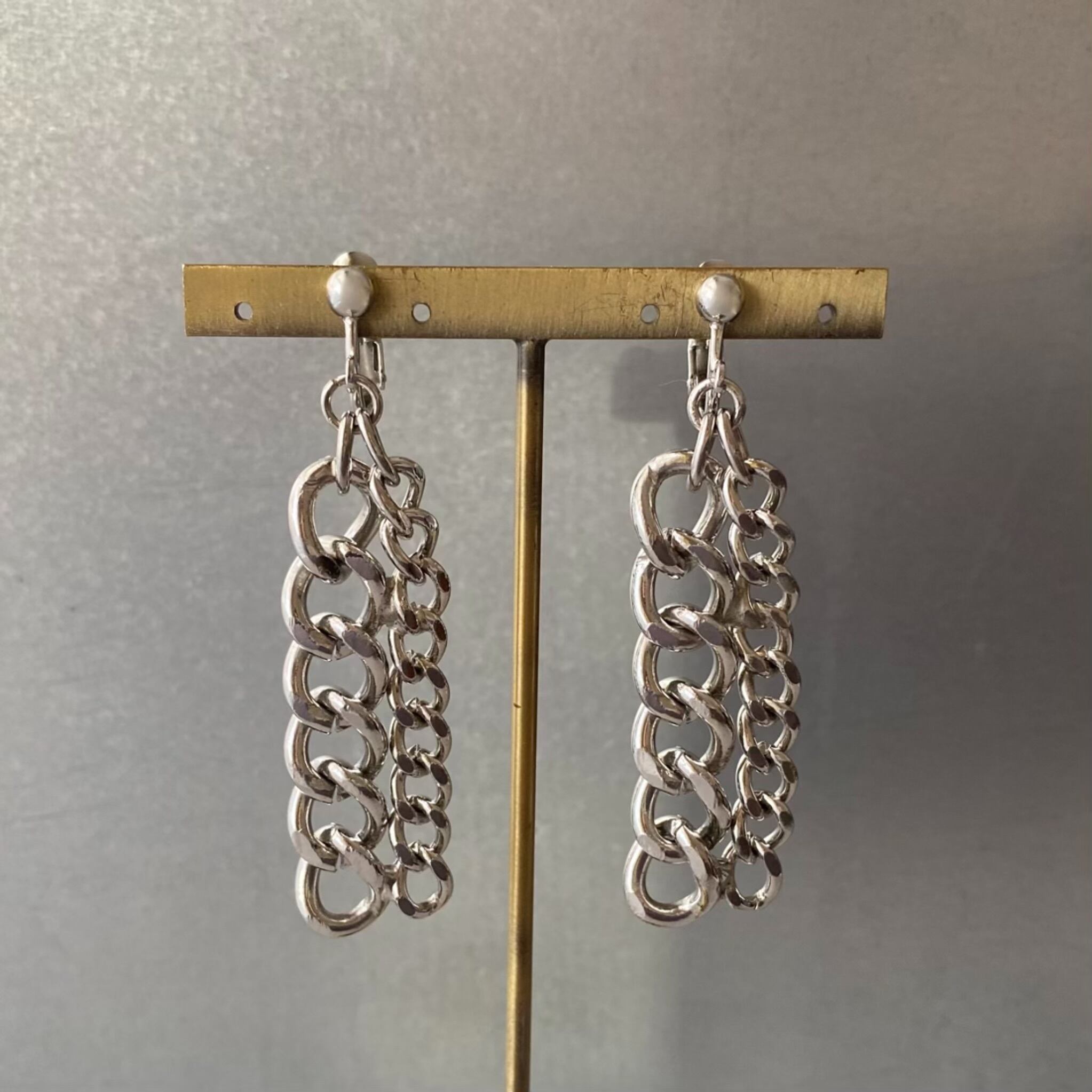 スタイリッシュな雰囲気のUSAヴィンテージイヤリング。ボリューム感のある幅広ダブルチェーンがポイント。シンプルながら存在感がありコーディネートのアクセントに。古着やユニセックスなスタイルにもオススメです。